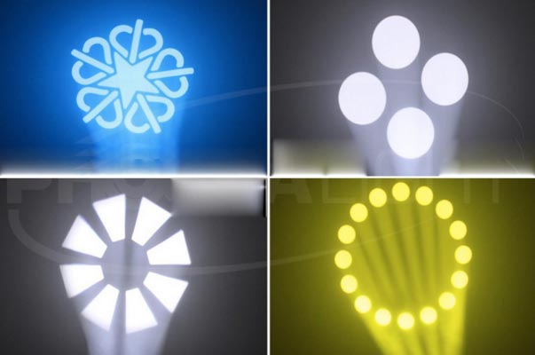 - Gobos : 8 gobos statiques + 6 gobos rotatifs + fonction shake