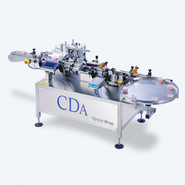 La Ninon Wrap de CDA est une étiqueteuse automatique qui utilise la technique d’étiquetage par banderolage, idéale pour les produits cylindriques de tous formats. Ce système permet un habillage enrobant où l’étiquette est appliquée de manière continue autour du produit pendant sa rotation le long du convoyeur.