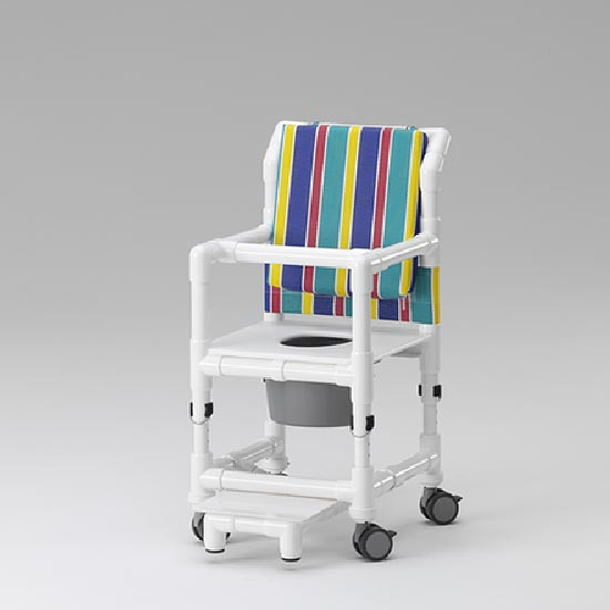 Cette chaise de douche est équipée d'un seau hygiénique avec graduation intérieure et fermeture hermétique.