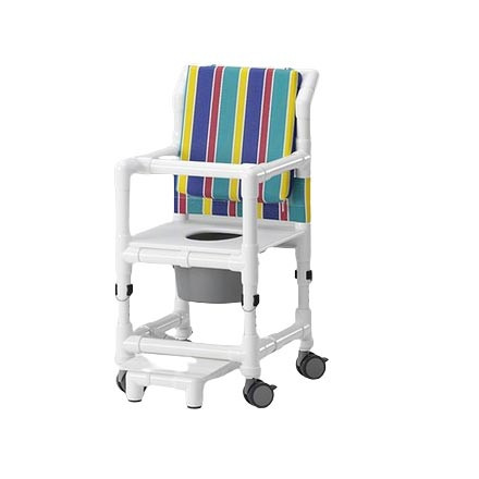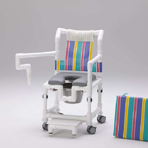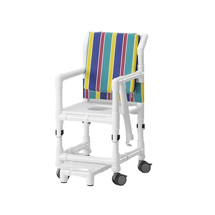 L’assise rembourrée intègre une ouverture centrale et une ouverture hygiénique, facilitant la toilette intime et le nettoyage. Le dossier en tissu Textilene® hydrofuge, associé à un coussin de dos souple (épaisseur 50 mm, amovible et lavable en machine), assure un excellent maintien et un confort durable, sans pression excessive.
