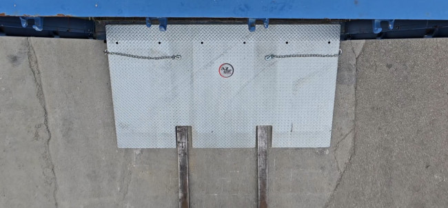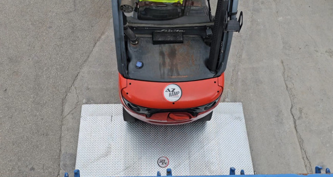 - Facilité de transport: La rampe est équipée de fourreaux frontaux permettant au cariste de la transporter et de la positionner facilement à l'aide d'un chariot élévateur.