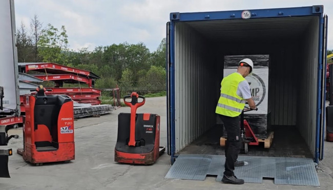 - Facilité d'accès: La rampe permet de créer un passage surélevé et stable entre le sol et le container, facilitant le chargement et le déchargement de marchandises à l'aide d'un chariot élévateur ou d'un transpalette.