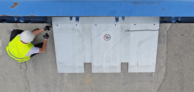 - Ouverture et fermeture des portes du container: Les échaucrures intégrées à la rampe permettent d'accéder aux portes du container et de les manipuler sans avoir à la déplacer.