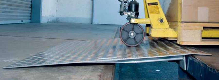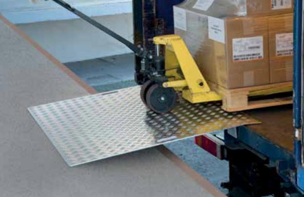 Cette plaque de chargement à quai en aluminium est conçue pour le passage d'engins entre un camion et un quai.