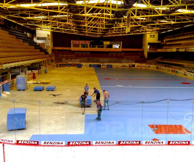 Conçu en République Tchèque, ces dalles de marque sont utilisées par de nombreuses fédérations sportives et notamment au Championnat du monde de Hockey.