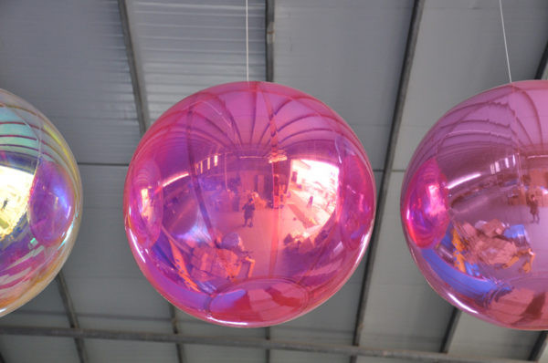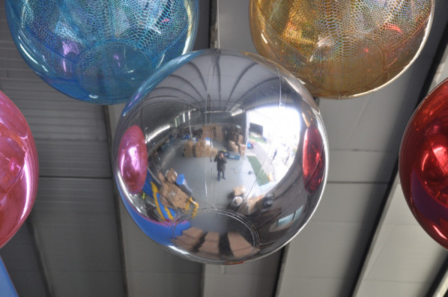 Je souhaiterais connaitre vos prix pour vos ballons miroir. Je voudrais faire un plafond suspendu en ballons miroir/holographique, de quel manière les gonfler? leur poids etc....
