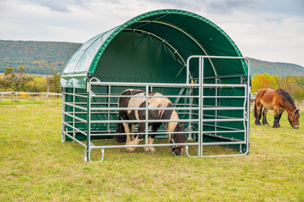Cet abri de pâturage léger en forme d'arc est spécialement conçu pour offrir un refuge optimal à vos chevaux.