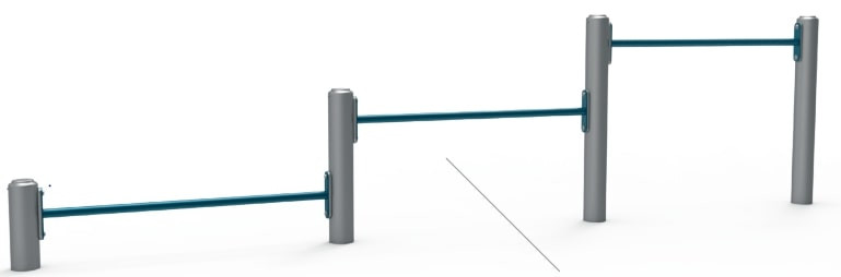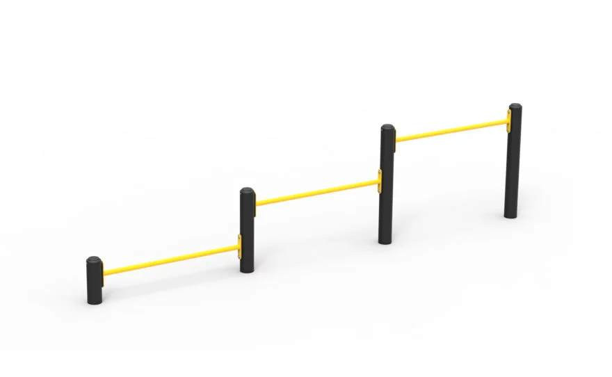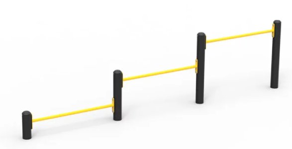 Avec une largeur entraxe de 1,2 m entre les barres et une largeur totale de 3,7 m, notre triple barre de pompes extérieur offre un espace confortable pour l’exécution des mouvements, tout en limitant les risques de collision entre utilisateurs.
