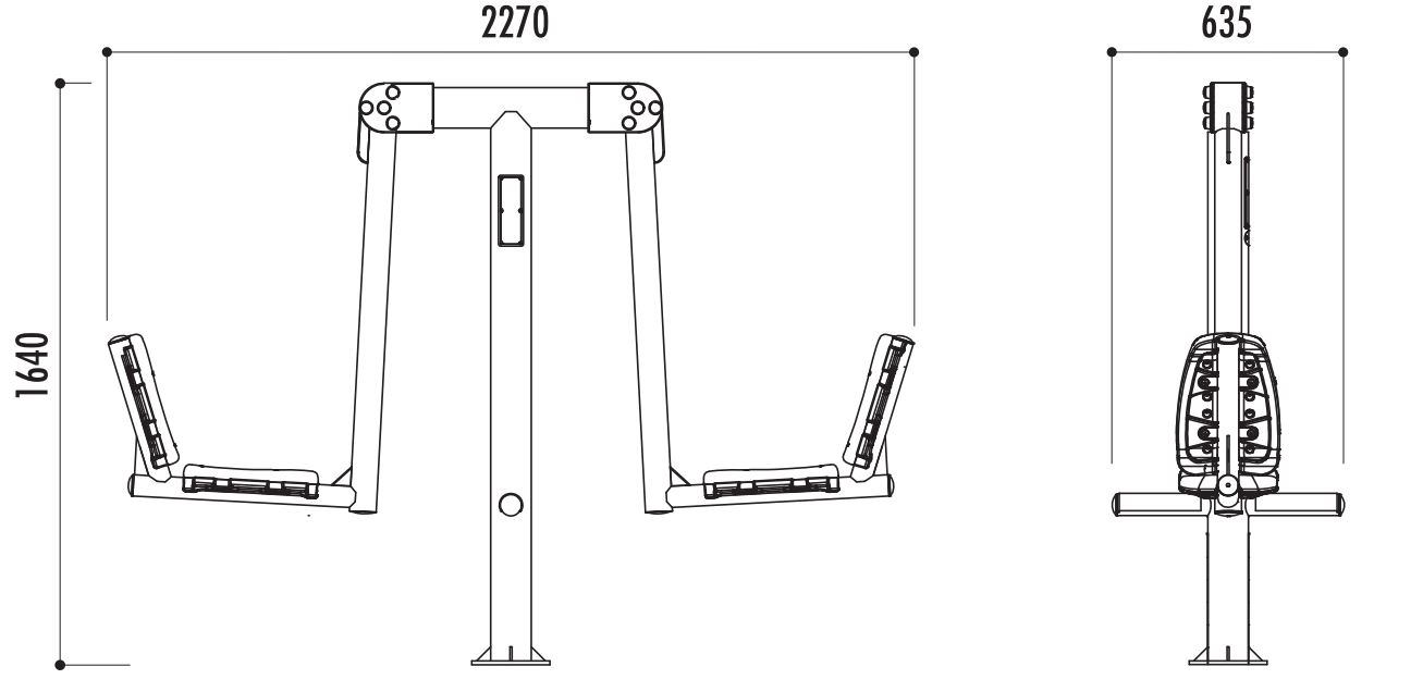 - Dimensions : (L x l x H) 2270 x 635 x 1640 mm