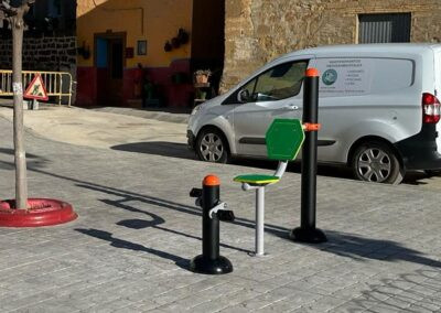 - Poteaux faits de tubes d'acier galvanisé de 114 mm de diamètre, avec une base d'ancrage de 300 mm de diamètre et de 4 mm d'épaisseur, avec 4 trous pour des bouchons métalliques d'expansion M120X100