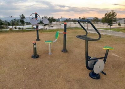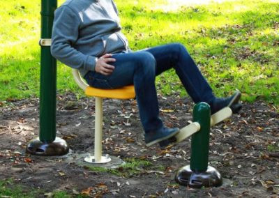 Cet appareil fitness extérieur Chaise à pédales permet de travailler la musculature des articulations des jambes et des pieds.