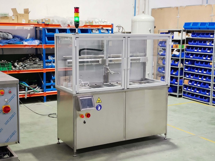 La ligne de nettoyage comprend cinq étapes distinctes, avec trois bains à ultrasons.
