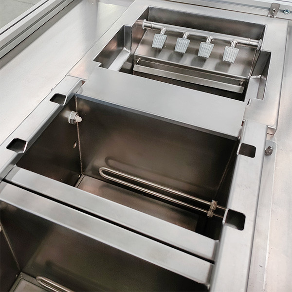 Les deux premiers bains sont alimentés par de l'eau du réseau, tandis que le troisième est alimenté par de l'eau déminéralisée.