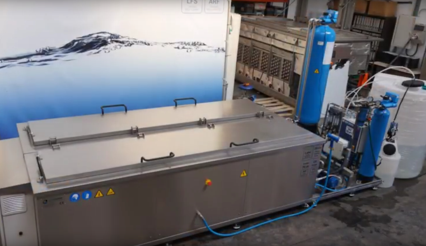 - Rinçage à l'eau filtrée par osmose inverse à 40° dans un réservoir séparé,