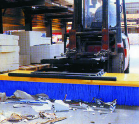 Le balai pousseur électrique s'adapte très facilement sur un chariot élévateur.