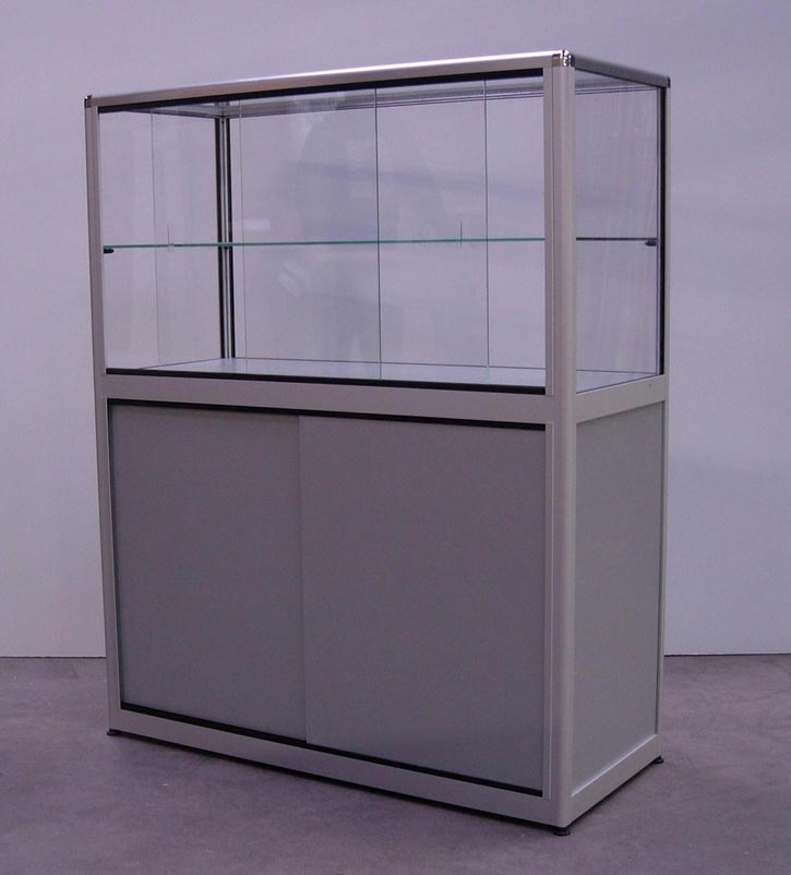 03/12/2021Bonjour, je suis à la recherche d"un meuble d"exposition sans roulette, avec une partie basse avec porte, et une partie haute vitrée avec étagères.