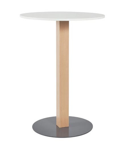 Réf. TC : 664245534Table mange debout ronde piètement central KERIA 110 Stratifié chants ABS Vernis naturel Gris métal Hêtre naturel 36,3