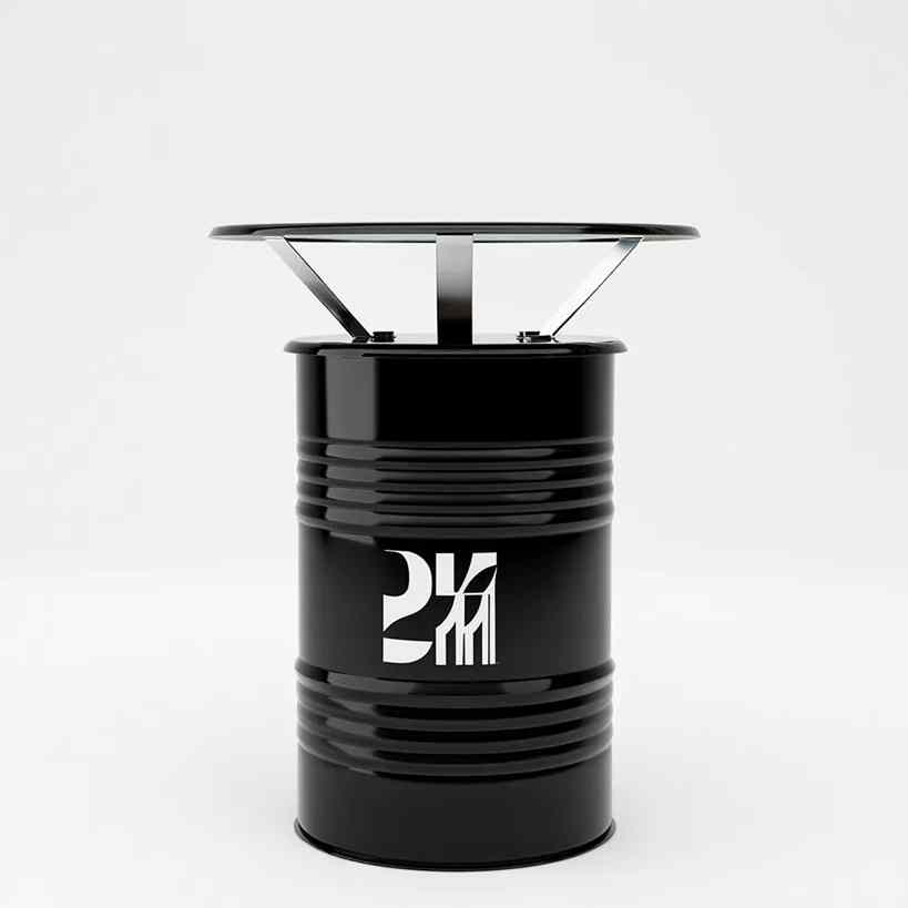 Le baril est en acier peint haute résistance, traité avec une peinture thermolaquée disponible en finition mate, satinée ou brillante.