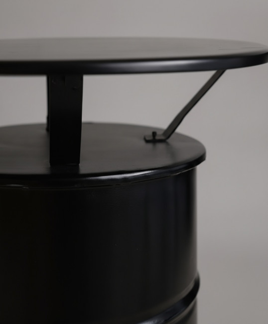 Ce modèle unique transforme un baril industriel en une table haute personnalisable, idéale pour les :