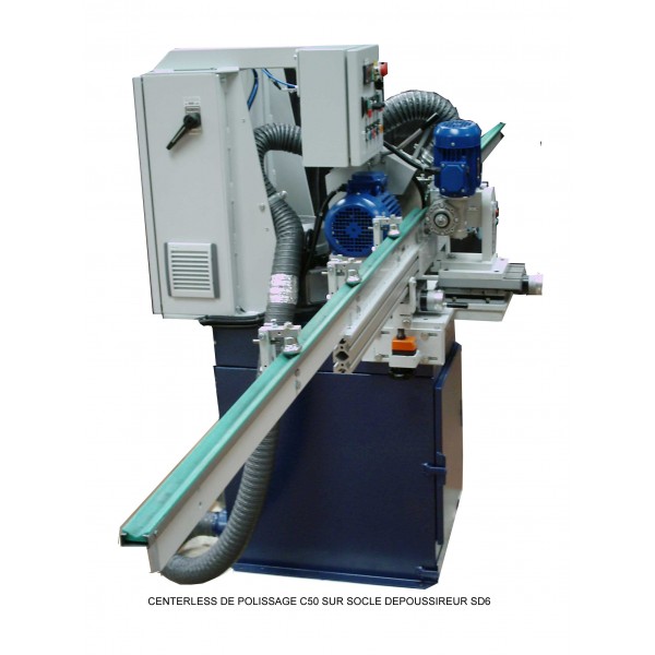 polisseuse industrielle à bande abrasive destinée à polir des pièces cylindriques tubes et barres, selon le principe centerless.
