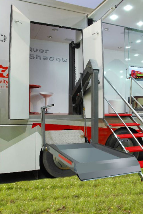 Bonjour, nous allons préparer un camion pour des commerçants et nous avons besoins d"un accès handicapé à faible poids et fable en prise de place. Ce serait pour un camion en plancher cabine avec une caisse de 23 m3 dessus. Merci