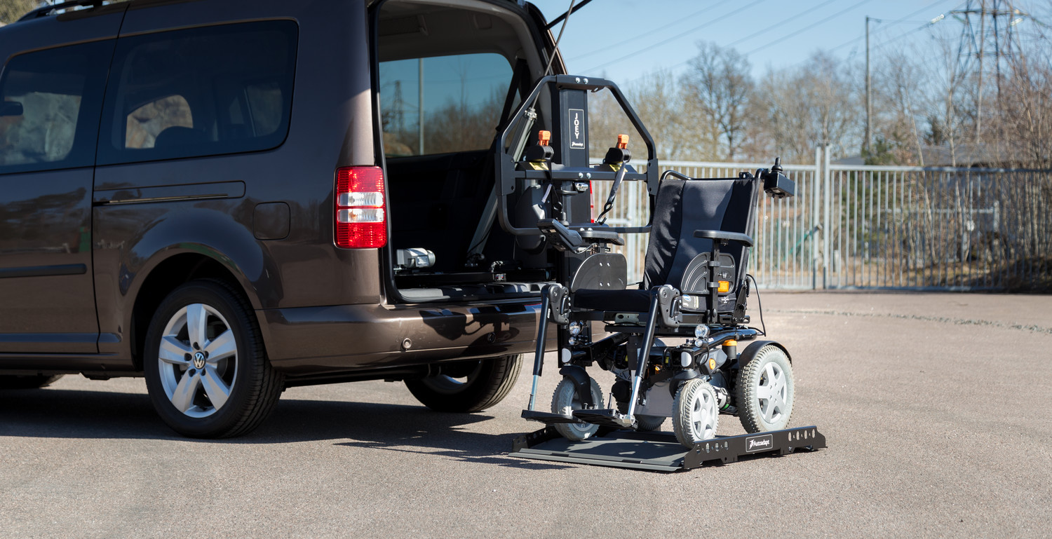 Elleest située à l’arrière du véhicule et permet de soulever et charger le fauteuil roulant dans un véhicule. Vous positionnez et fixez simplement le fauteuil roulant sur la plateforme depuis l’extérieur du véhicule, vous appuyez sur la télécommande et c’est tout.