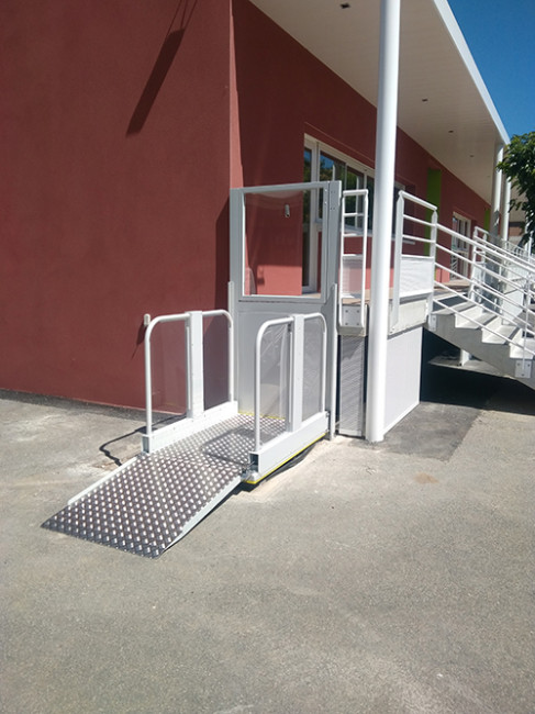 Cette plateforme élévatrice, conçue pour les personnes à mobilité réduite, permet le franchissement jusqu’à 83 cm de hauteur.