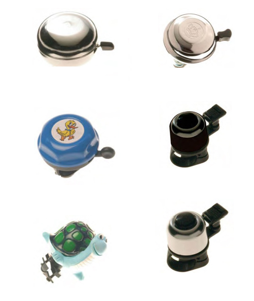 Sonnette adulte ou enfant. Types disponibles: Timbre rond noir, Sonnettes aluminium type hollandaise, Sonnettes enfant fantaisie.