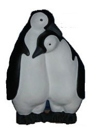 - le couple lié de 2 bébés pingouins en résine 58 cm pour décors de neige artificelle, une peluche très agréable et réaliste pour des décors de scénographies polaires et de Noël.