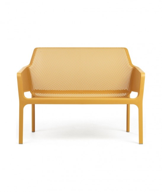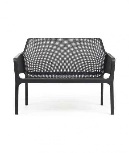 Usage : extérieur Structure : polypropylène Assise et dossier perforés Dimensions ( L x P x H) : 116 x 70 x 86 cm