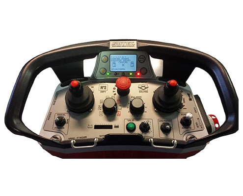 Emetteur de radiocommande adaptable à tous types de ponts roulants, engins de manutention et machines, équipé de la technologie à double microprocesseur pour une sécurité accrue dans un boîtier ergonomique et très robuste pour utilisation en environnement sévère.