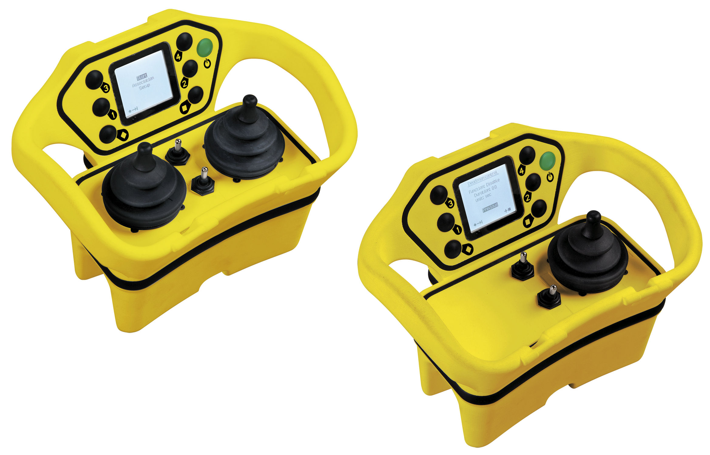 - Plus flexible que les boîtes à boutons reliées par câble et permet à l’opérateur de se placer à une distance de sécurité par rapport à la charge.