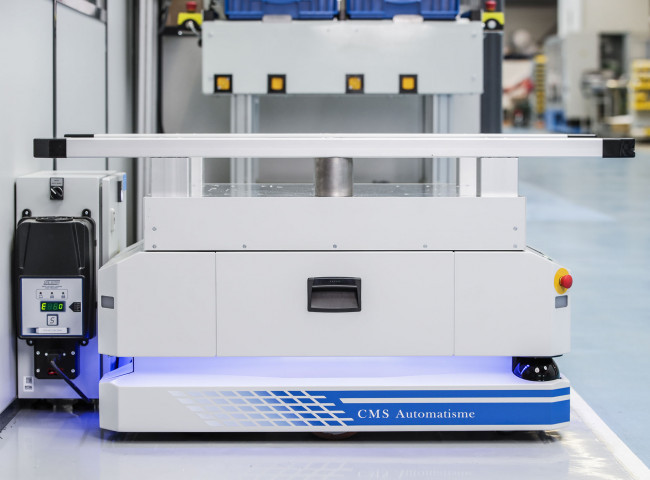 IWI® exécute les tâches à faible valeur ajoutée et rend votre flux logistique de production complètement autonome. C'est grâce à la communication directe de IWI® avec vos machines, votre ERP et l'environnement (ex. porte sectionnelle...) que vous fluidifiez les maillons de la chaine de fabrication et optimisez votre lean management. IWI® est intégré sur votre site de production.