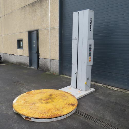 Nous sommes à l"achat d"une filmeuse de palettes semi-automatiques d"Occasion d"un plateau de 1500 mm ou 1600 mm avec rampe d"accès