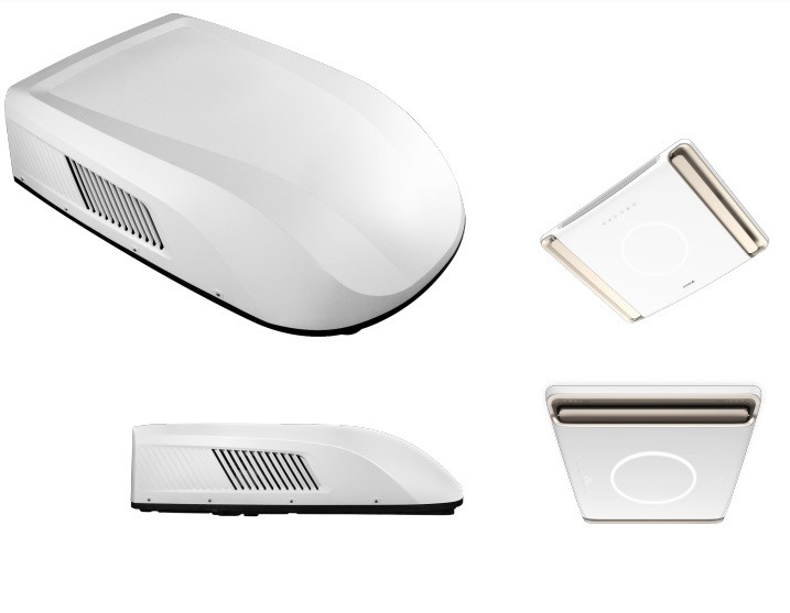 Une commande wifi permet de piloter le système à distance depuis son smartphone, et intègre un éclairage LED pour donner une sensation plus lumineuse dans l'espace climatisé.
