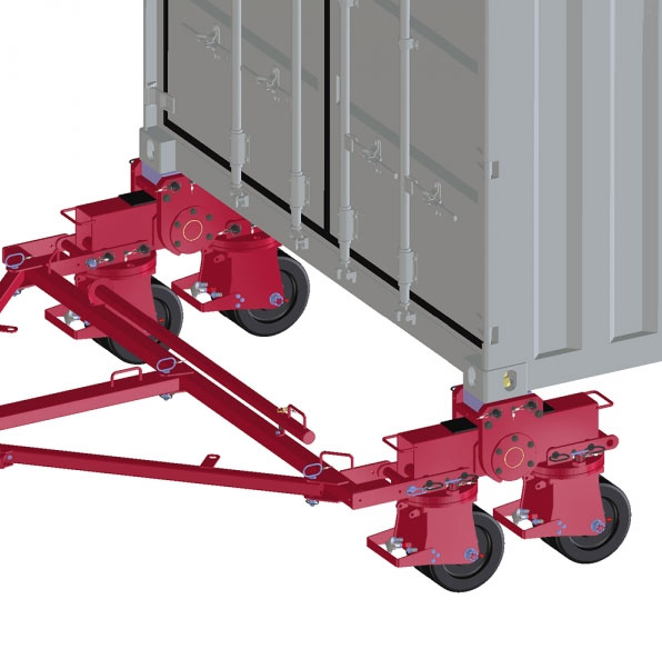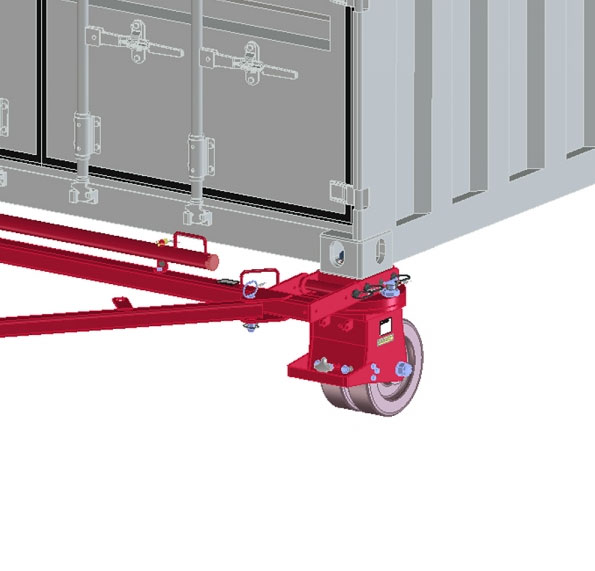 Nous cherchons un système pour ajouter des roues sous un conteneur de matériel 20" < 12T, tracté par un chariot Cat 4.