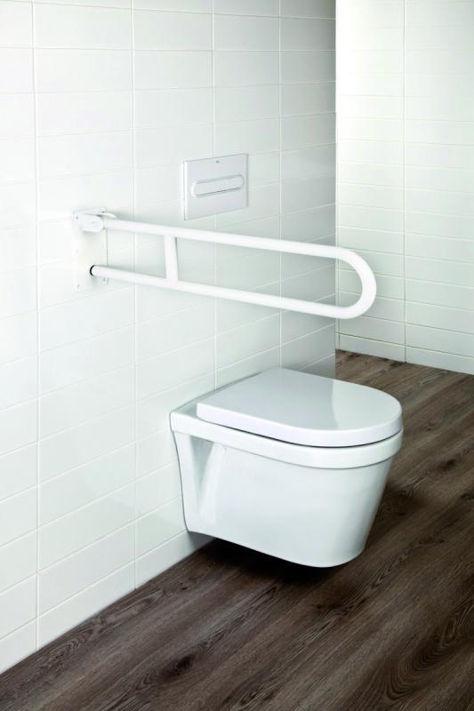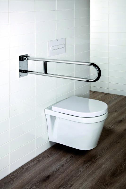 Cette barre d'appui relevable peut rester relevée ou baissée grâce à son système de blocage en position verticale.