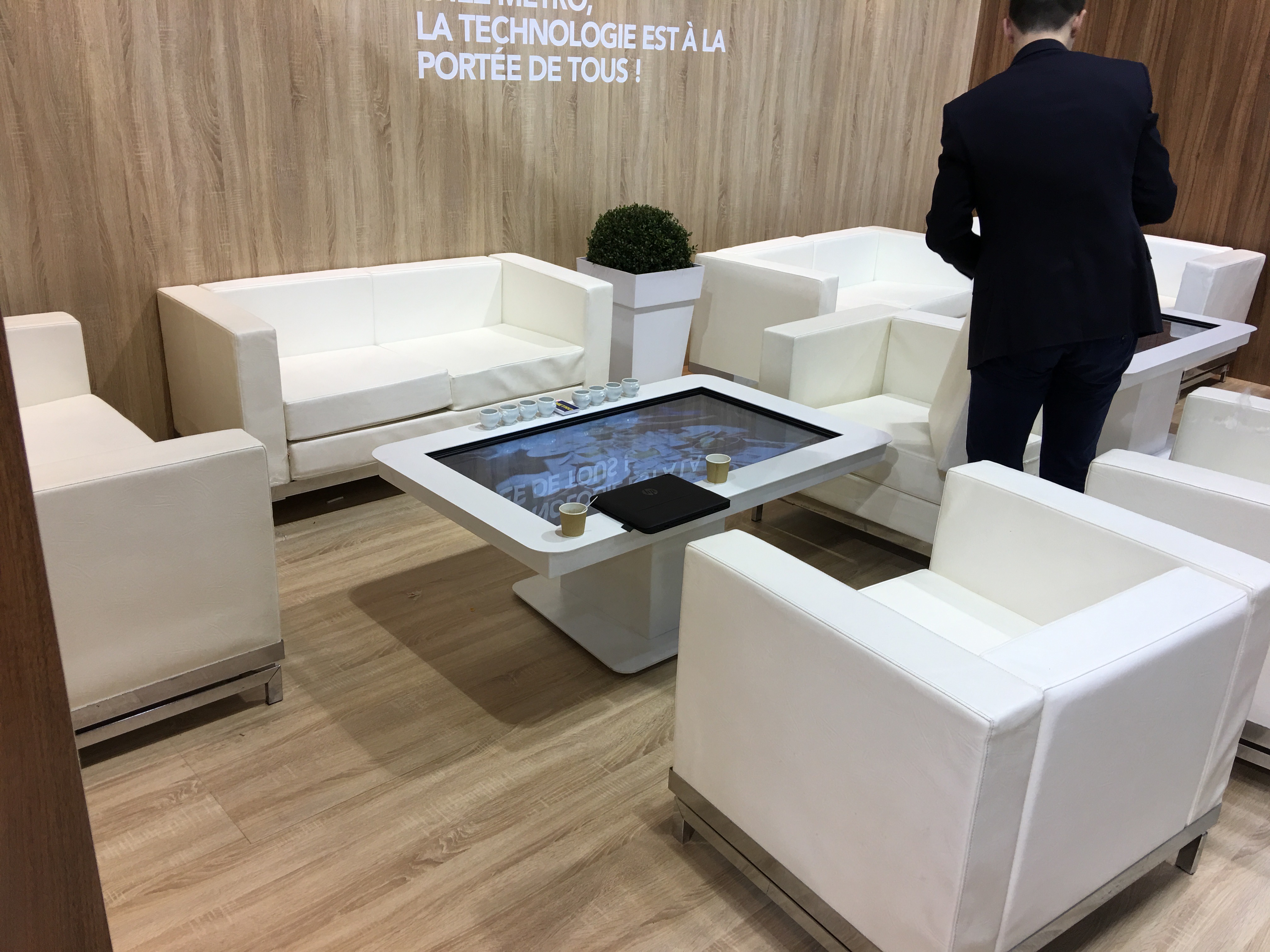 Notre demande : L"idée est d"avoir une table digitale multitouche utilisable par 4-5 personnes avec du contenu sur l"entreprise (qui reste encore à définir). L"idéal serait que les utilisateurs soient debout et puissent se regrouper autour de la table. Nous voudrions également que vous intégriez des documents type images, PDF, vidéos ... Votre prestation devra intégrer la livraison et la reprise sur le salon. 22 AU 25 Octobre à Madrid.