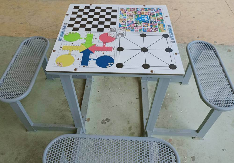 Cette table de jeux est anti-vandalisme et dispose de 4 bancs en acier galvanisé.
