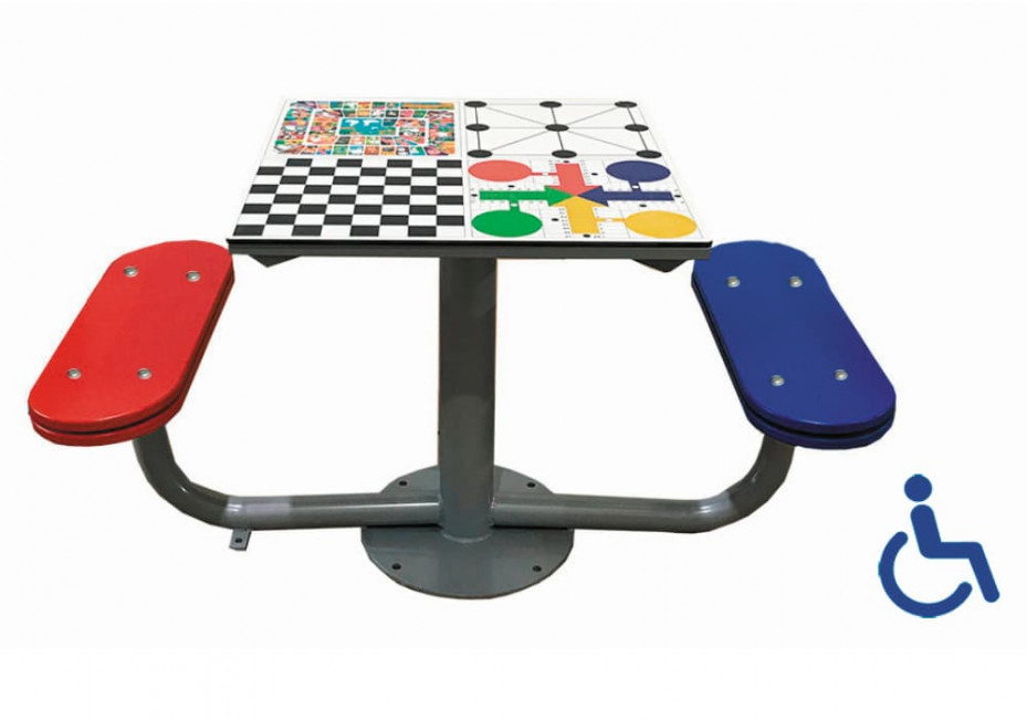 Table d'éxtérieur pour jeux de société : échiquier, jeu de l'oie, jeu des petits chevaux, morpion.
