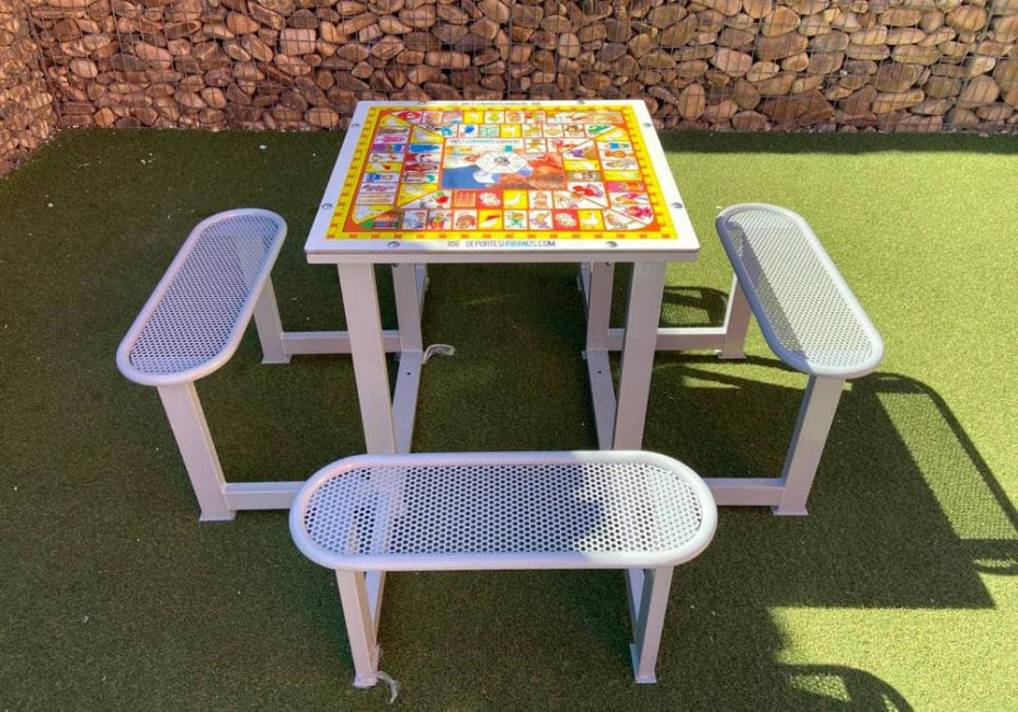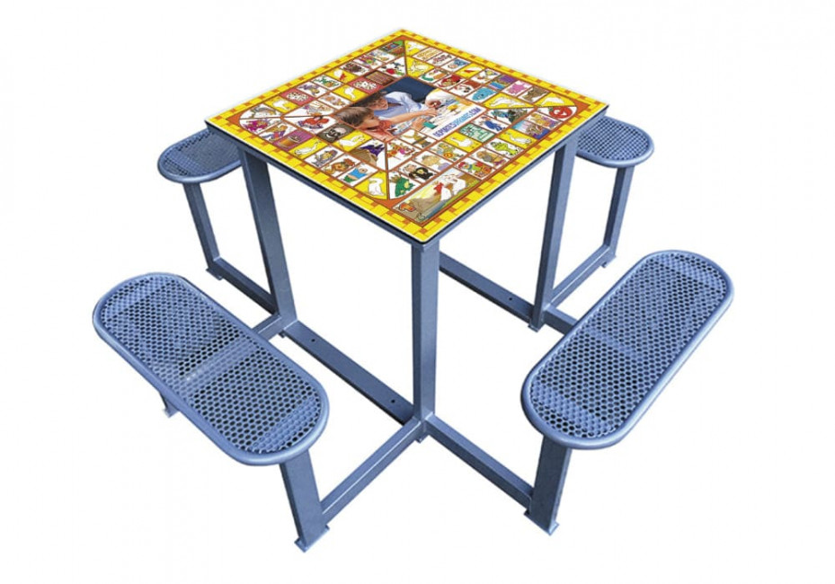 Table pour jeu de l'oie destinée à être installée dans un espace extérieur.