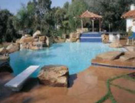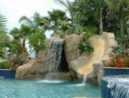 Je souhaite installer un toboggan avec une cascade incorporée au bord de ma piscine avec un faux rocher pour décorer.