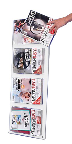 Ce support mural peut accueillir des journaux, magazines, courriers et documentations grand format.