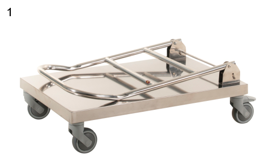 - 4 roues pivotantes, 2 avec freins (diamètre : 100 mm), bandage caoutchouc.