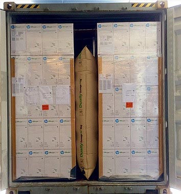 - Coussin dégonflé inséré entre les produits chargés sur palettes