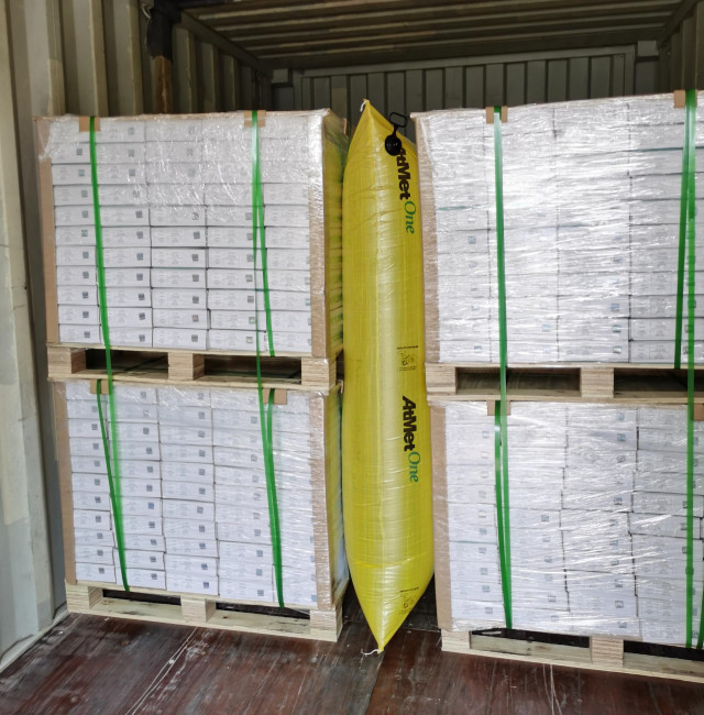 Les coussins de calage sont utilisés pour sécuriser les palettes lors de leur transport (par voie maritime, ferroviaire, ou routière) afin de remplir les espaces laissés vides dans le container. Le coussin dégonflé est d’abord inséré entre les produits chargés sur palettes, puis est gonflé à l’aide d’un compresseur à air (ou d’un outil portatif adapté). Les charges sont désormais maintenues et ne bougeront plus lors de leur transport.