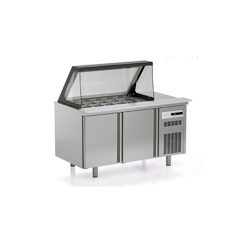 - Structure robuste relevable pour le service avec vitre et rabattable pour conserver encore mieux le froid entre les services
