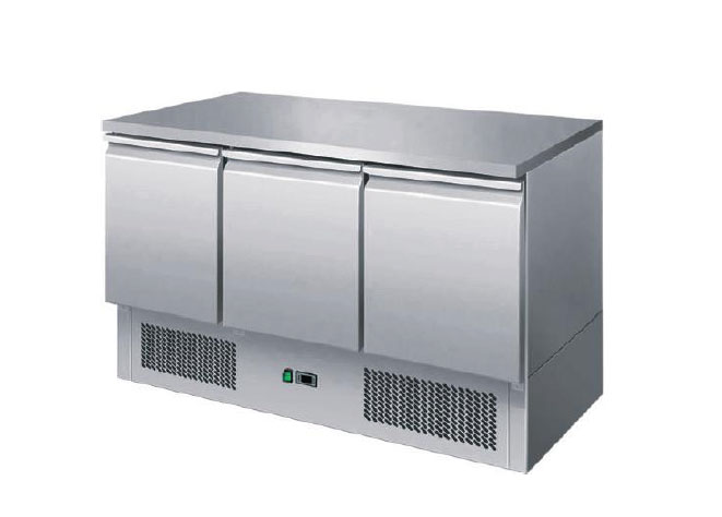 La saladette à trois portes de gamme européenne est destinée à des professionnels de la restauration.