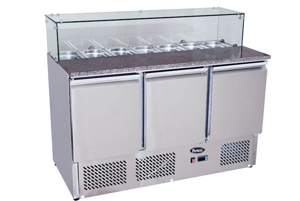 La saladette à trois portes idéale pour les professionnels de la restauration tels que les pizzerias et les snacks.