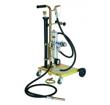 Il dispose d’une pompe pneumatique avec un débit de 23 L /min pour fût de 50 à 60 Kg.